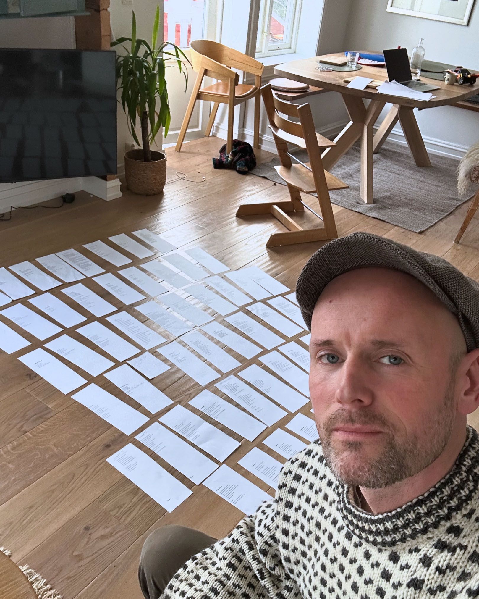 Stovegolvet var ein bra arbeidsbenk, då eg skulle få oversikt over dikt-materialet. Det var ein gild dag når pallen med nytrykte bøker vart levert på tunet
