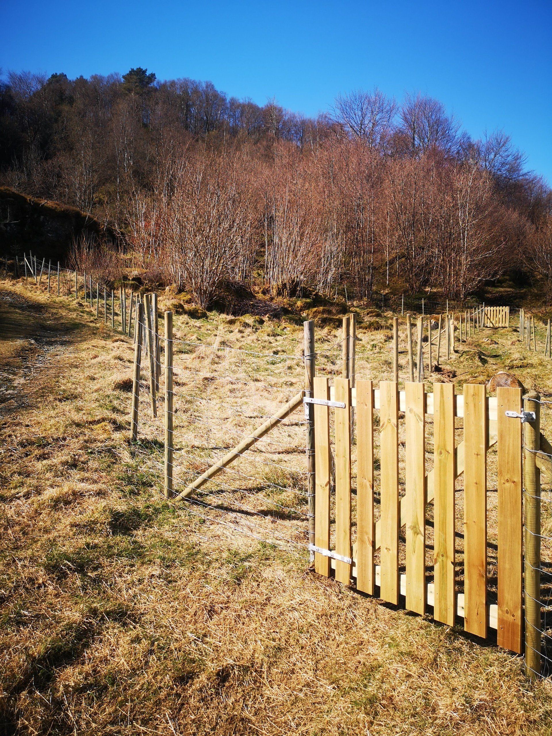 Etter dette var det valg av riktig utstyr for å kunne boltre fast gjerde og strenger i fjellvegg, få opp gjerder og snekre porter. Vi mangler fortsatt påler og gjerde langs én vegg, men der er det en steingard vi håper er høy nok. Skulle det vise seg å være et problem har vi nok rester til å sette dette opp hurtig.