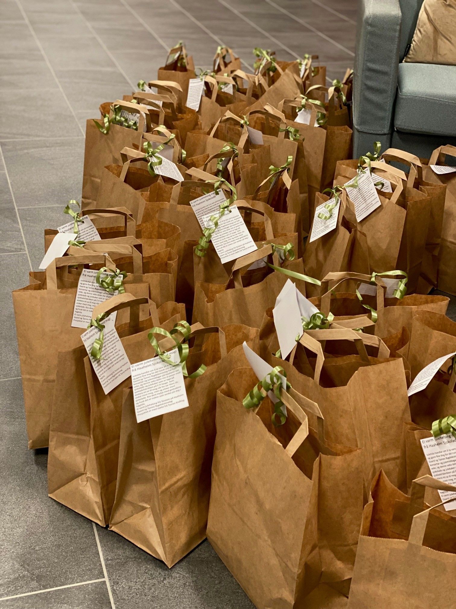 Vi hadde også i år utlevering av poser med julemat, det var svært positivt og vi fikk mange gode tilbakemeldiger på kort, telfonsamtaler og meldinger. Det var nybaka brød,sylteflesk, røykt aure og småkaker i posen. Vi måtte i år gjere det litt annleis då heimesjukepleien ikkje hadde kapasitet for å levere ut. Dette blei positivt då det engasjerte mange i utkjøring og dei som fekk posane, fekk besøk og ein fin samtale med dei som leverte. Då dette måtte gjerast med samtykkesjkema, så det var ikkje så lett som før (pg av taushetsplikt). Vi leverte ut 73 poser i år.