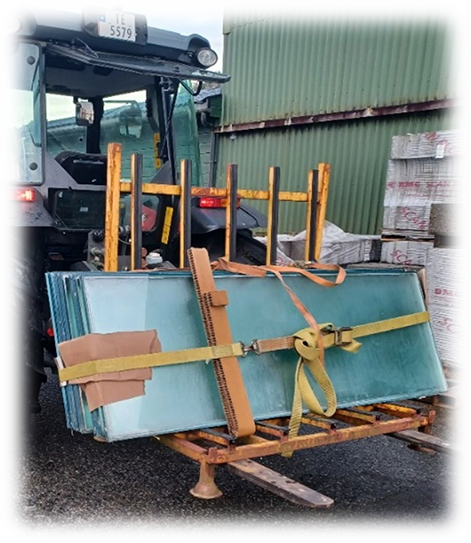 Defekte vindu og byggeavfall er transportert og levert hos SIM/Erdalen