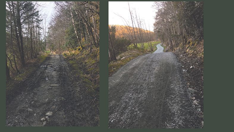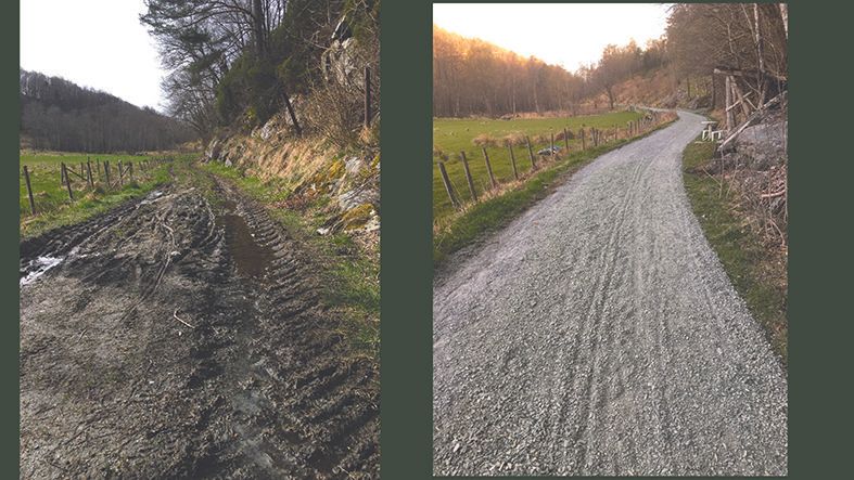 Vedlagt er bilder før og etter oppgradering av den gamle vegen. Lunde bygdalag vil rette ein stor takk til grunneigarar, dugnadsfolk og Tysnes Kraftlag for ei fin oppgradering av Gjersmyra.