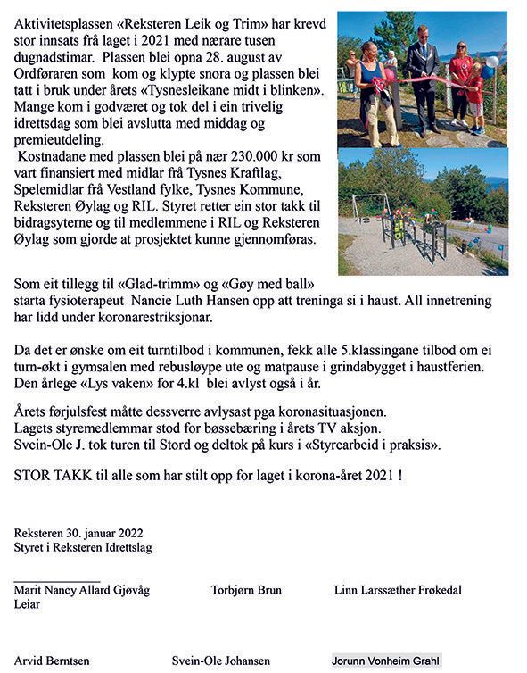 RIL ble i 2020 tildelt "Årets Frivilligpris" i Tysnes.