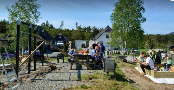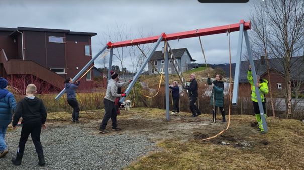 Me har kjøpt inn leikeapparater; Sklie med klatrevegg, Sandkasse, Benk, Klatrestativ til eldre born + babydisse og eit solid dissestativ med plass til "nest" og vanleg disse. Andre tiltak som er gjennomført er beskjæring, rydding av busker og gras (ryddesag), vask/vedlikehald av leikehytte. Me har bygga ny sandkasse og fjerna gamal sand, fylt på ny. Dette er gjort på dugnad. Det er også lagt ned ein del arbeid i å forankre dei store stativa med å grave hol og sette dei fast med sement. Me har dokumentert dugnadstimane/skrive timar (vedlagt).