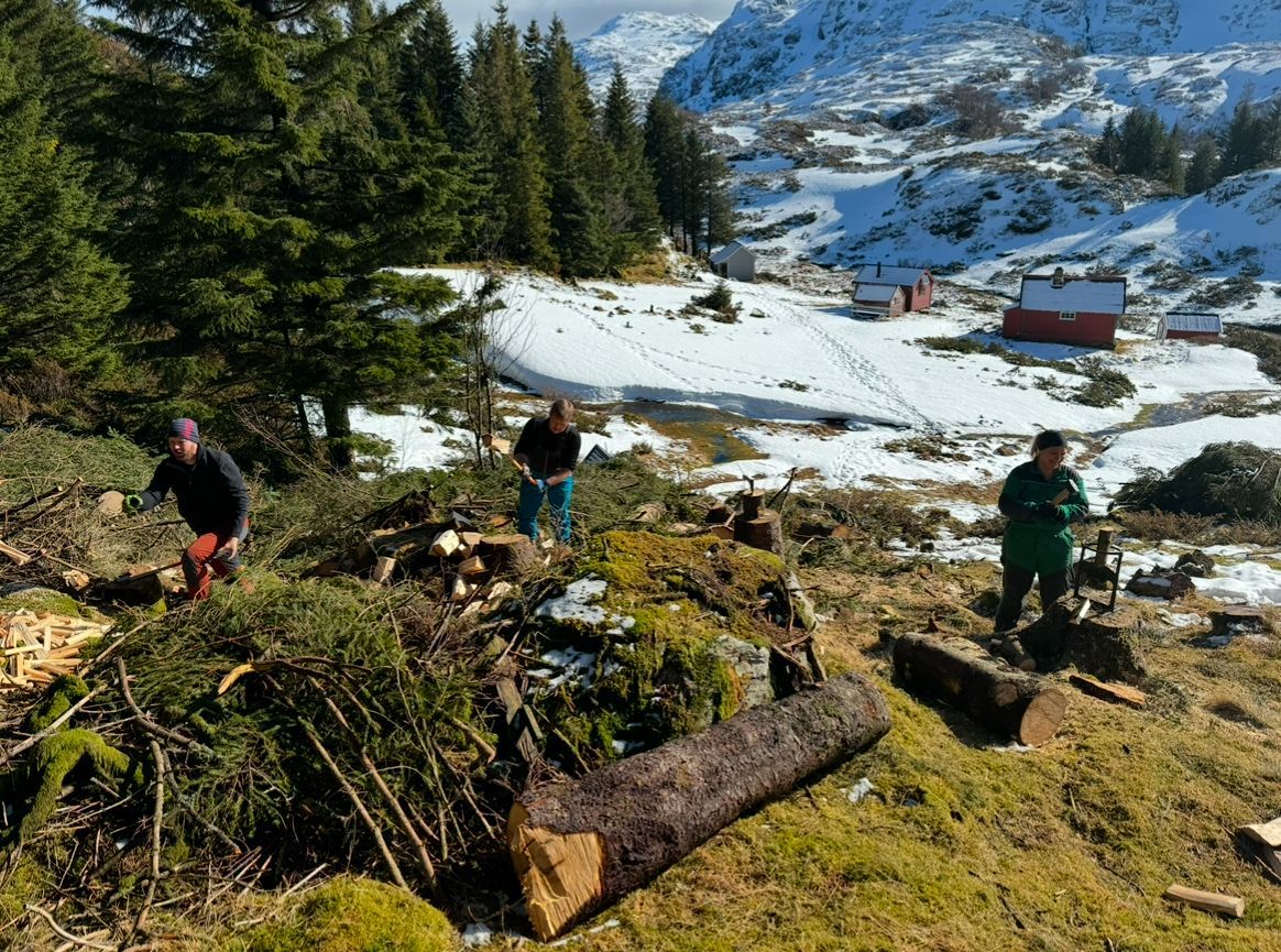 15-17.mars 2024 hadde Skihyttelagetdugnad for å opna landskapet og rydda i skog som var til fare for bydningar på Ådnastegen.