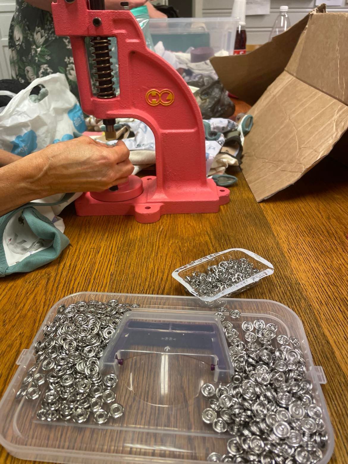 Med midlene vi har mottatt, har vi kjøpt inn coversøm maskin, knappepresse, silhouette maskin, varmepresser, og utstyr til de enkelte maskinene. Resterende midler er blitt brukt til innkjøp av stoff, knapper og garn.