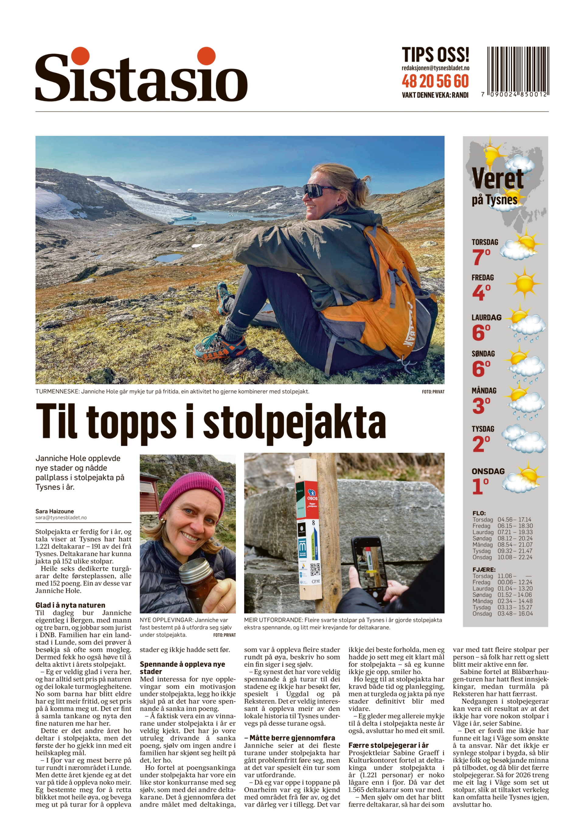 Saman med idrettslag og bygdelag frå ulike delar av Tysnes har ein bygd opp eit inkluderande og gratis aktivitetstilbod som motiverer både fastbuande og tilreisande til å oppleve naturen – til fots, på eiga hand eller saman med andre. Stolpejakten er eit framifrå døme på korleis frivillig innsats og lokal koordinering kan skape store ringverknader for både helse og samhald.