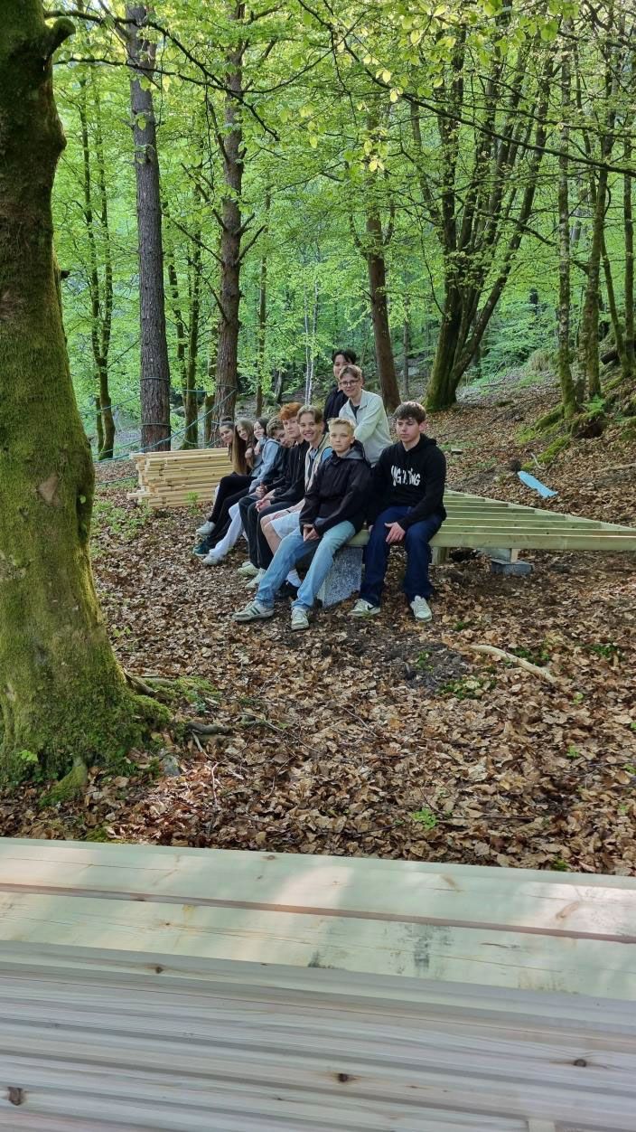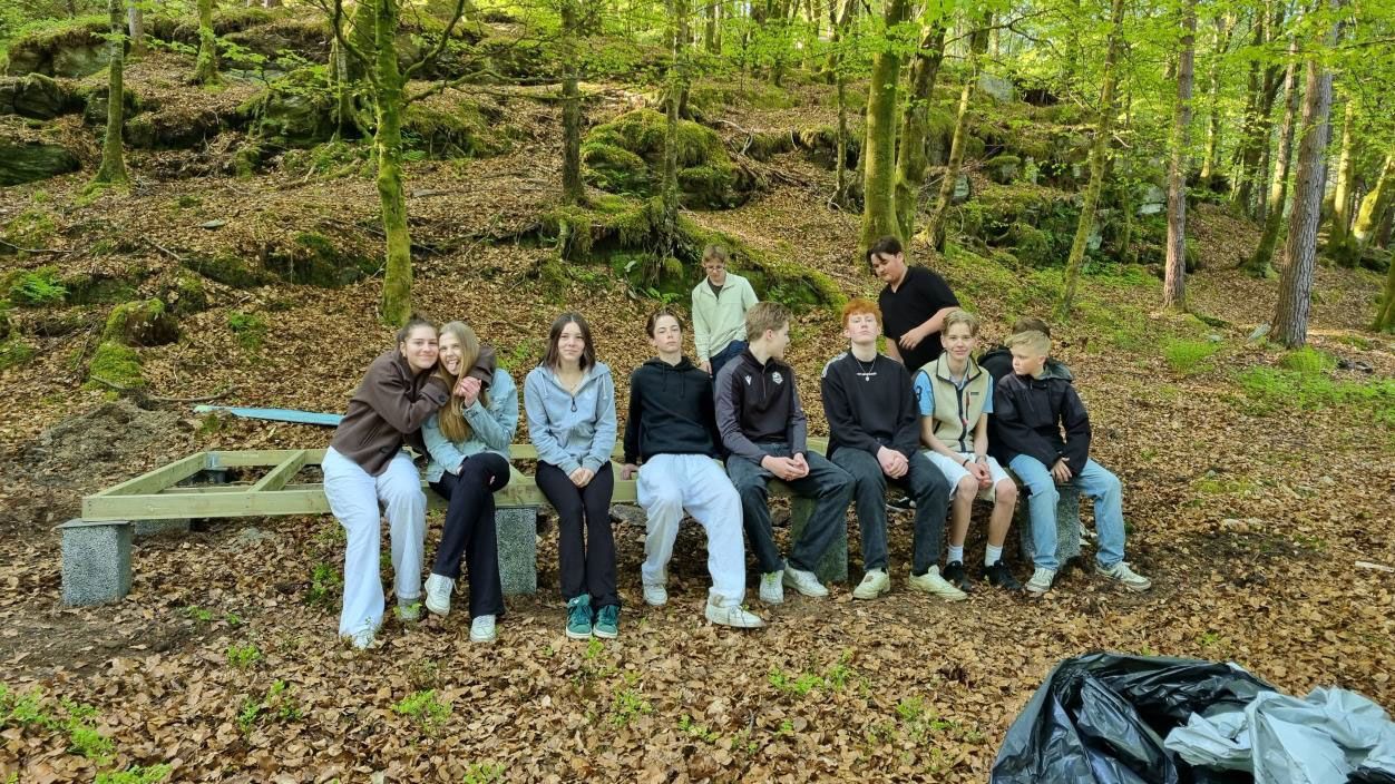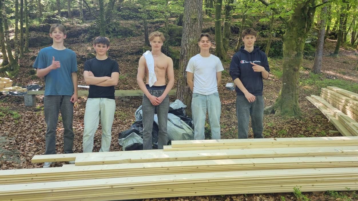 I tillegg har elevbedrifter(ALF) fått være med å beise gapahuken og elevane på skulen vore med og bære materialar opp til byggeplassen.