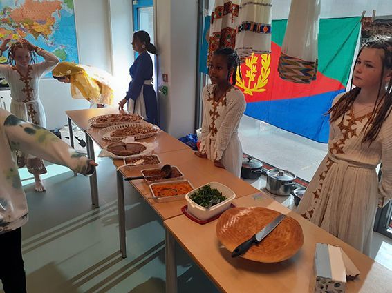 På onsdagen rullerte elevan rundt i dei ulike klasseromma der dei fekk oppleve smak, lukt, dans, eritreisk kaffikoking, afghansk hennamaling, folkedrakter og utstillingar frå dei ulike landa.