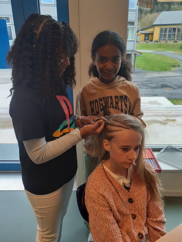 Tysdagen vart det jobba med 14 ulike land. Me laga kart, dans, film, brosjyrer, laga mat, veggavis, hårfletting m.m