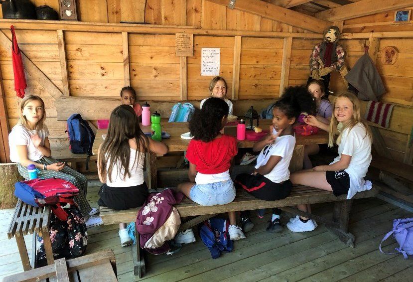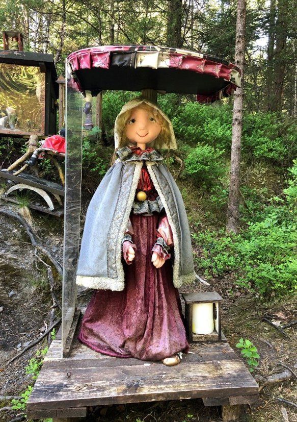 Elevane var ivrige etter å komma til eventyrskogen, og fulle av forventningar til kva dei skulle få sjå. Nokre av eventyrfigurane hadde fått plass rundt omkring i terrenget, og det var viktig å ta seg god tid til å sjå seg rundt. Høgt over bakken hang han som var på veg til verdas ende for å henta vatn. I ein monter stod dei sju svoltne ungane og venta på at pannekaka skulle bli ferdig steikt. Overalt var det nye og spennande ting å sjå, og elevane samtala ivrig om det dei fann.