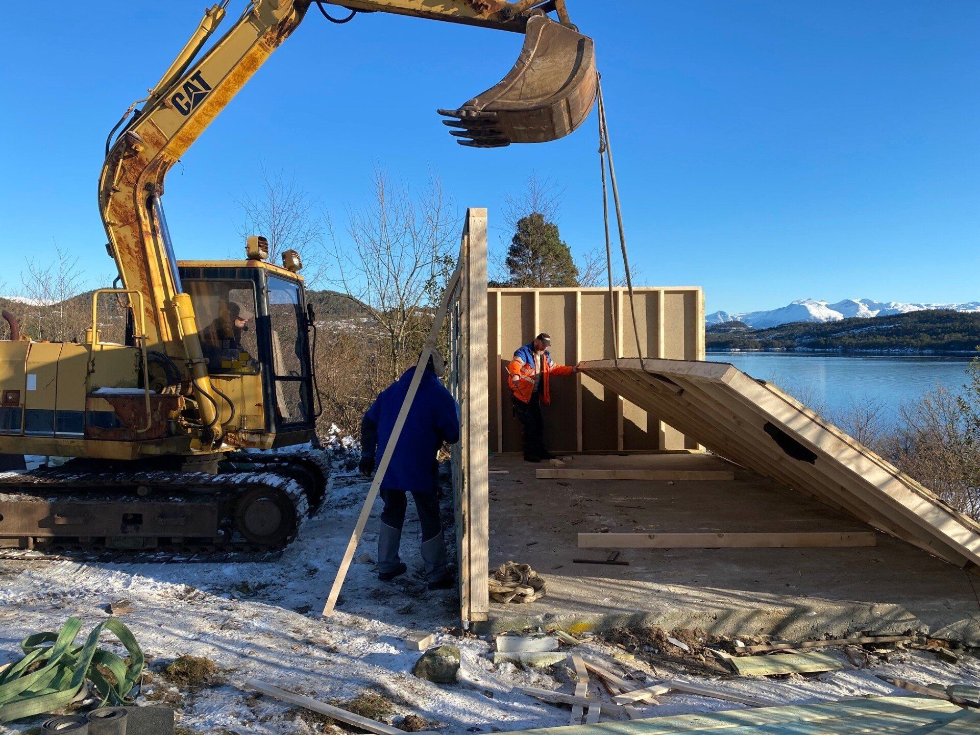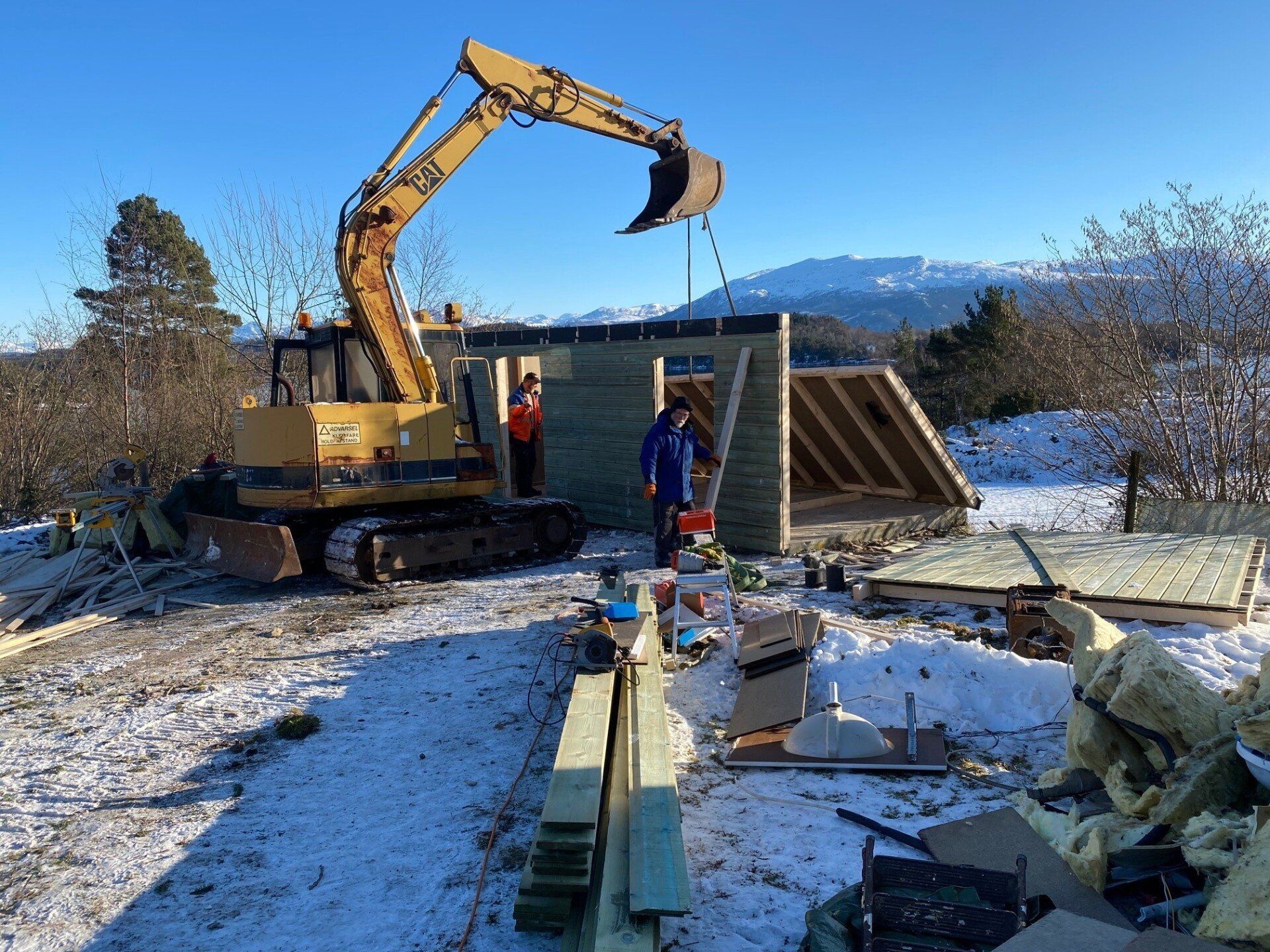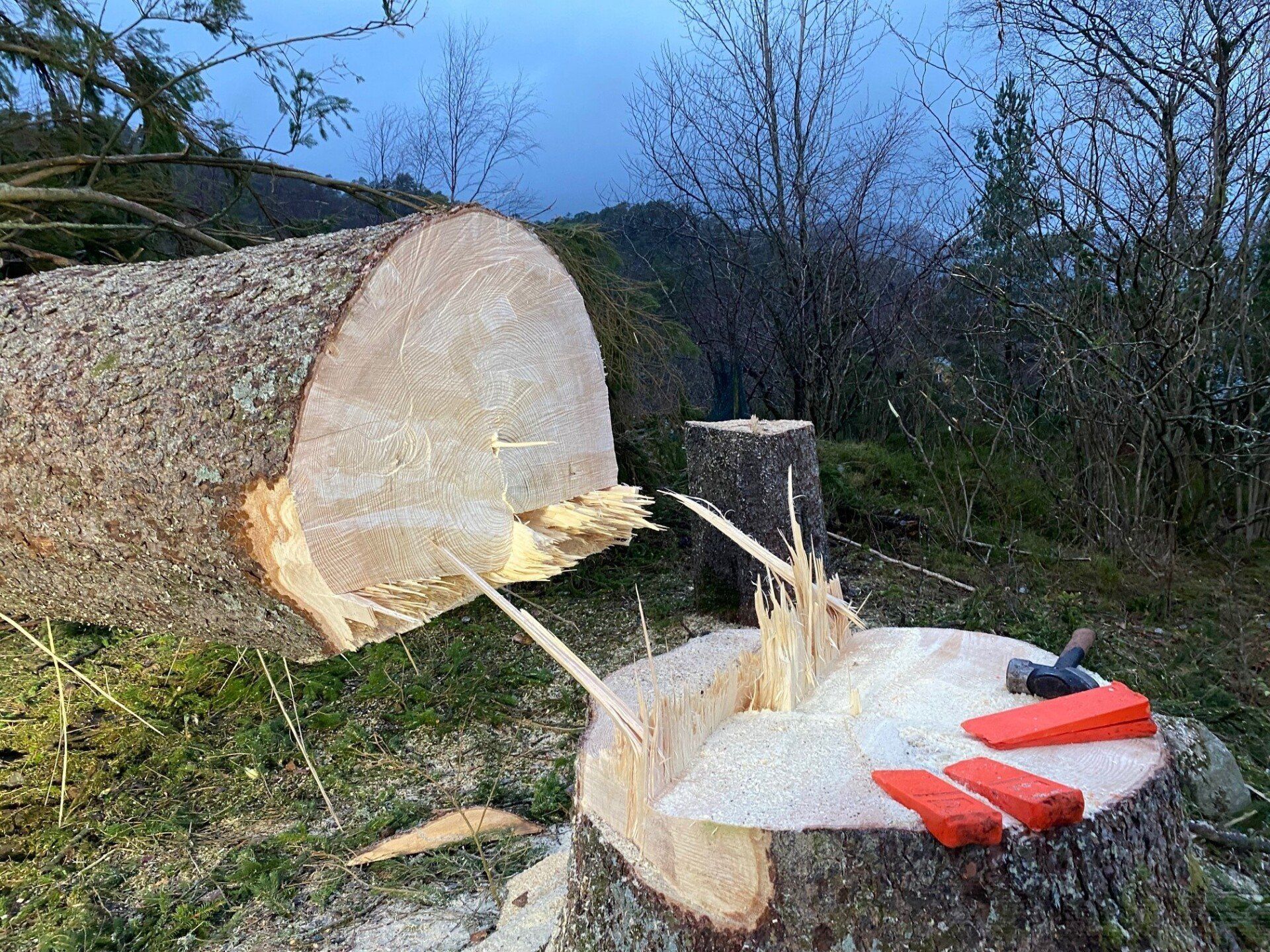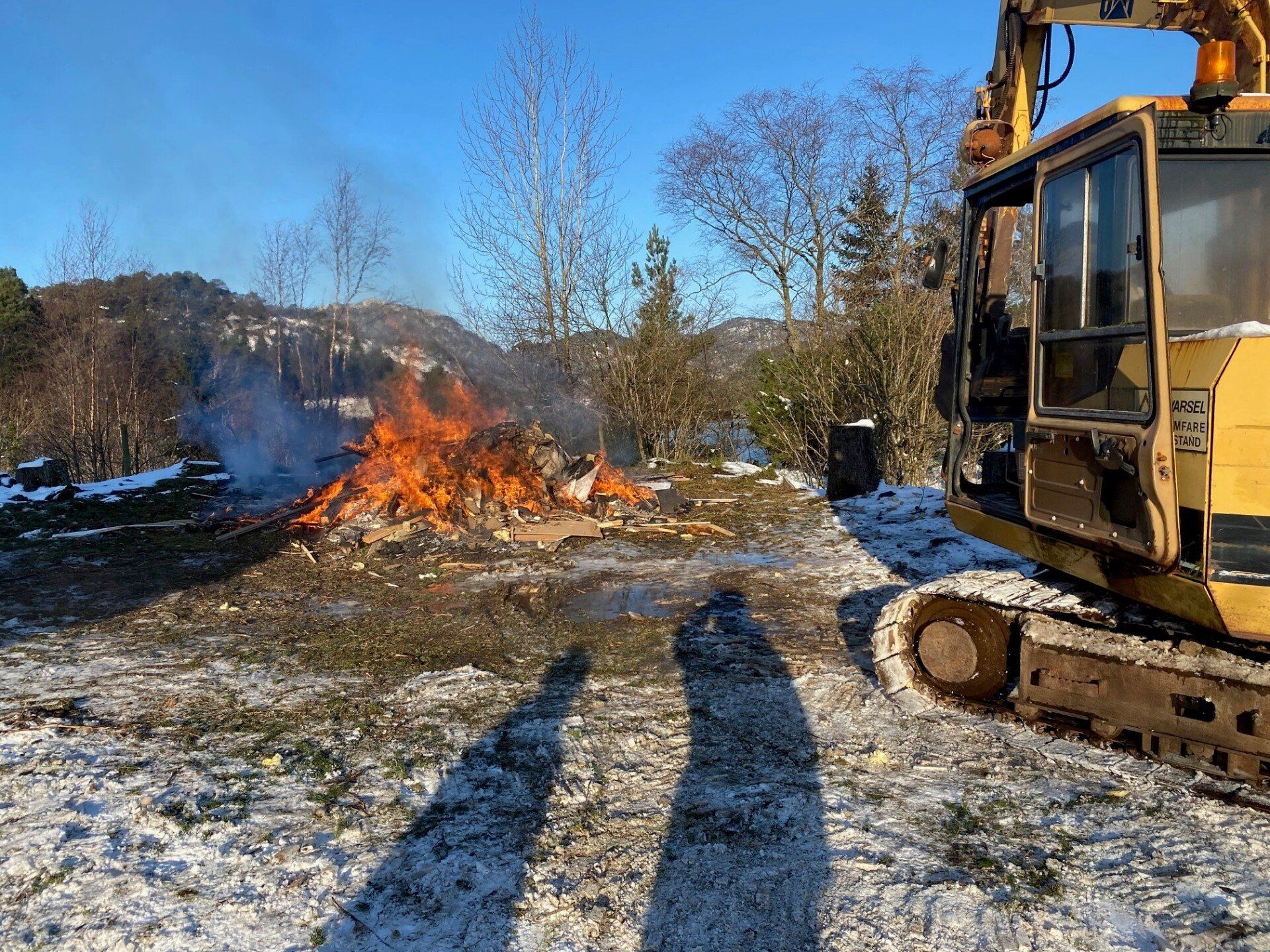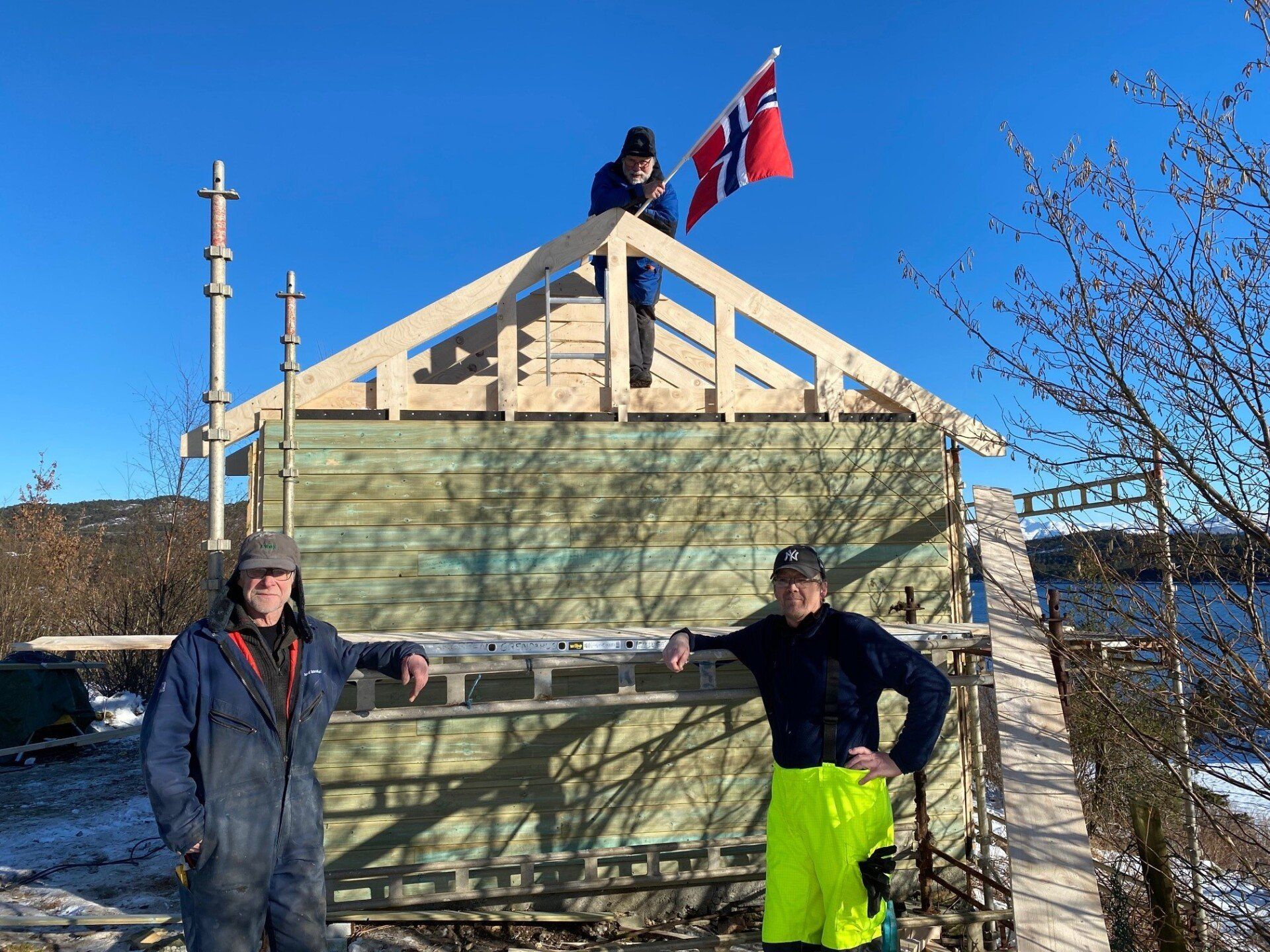 20.november i fjor blei grendahuset ramma av eit lynnedslag som øydela uthuset og det elektriske anlegget fullstendig, samt fleire glassruter blei sprengt. Vi fikk skadene i skulehuset dekt av forsikringa, men uthuset var ikkje dekka. Vi hadde ekstra generalforsamling kor det blei bestemt at vi skulle bygge nytt uthus på dugnad. Vi skulle felle dei store granene og bruka dei til å lage reisverk. Arbeidet blei satt i gong i vinteren 2021 og det gamle uthuset blei revet.
