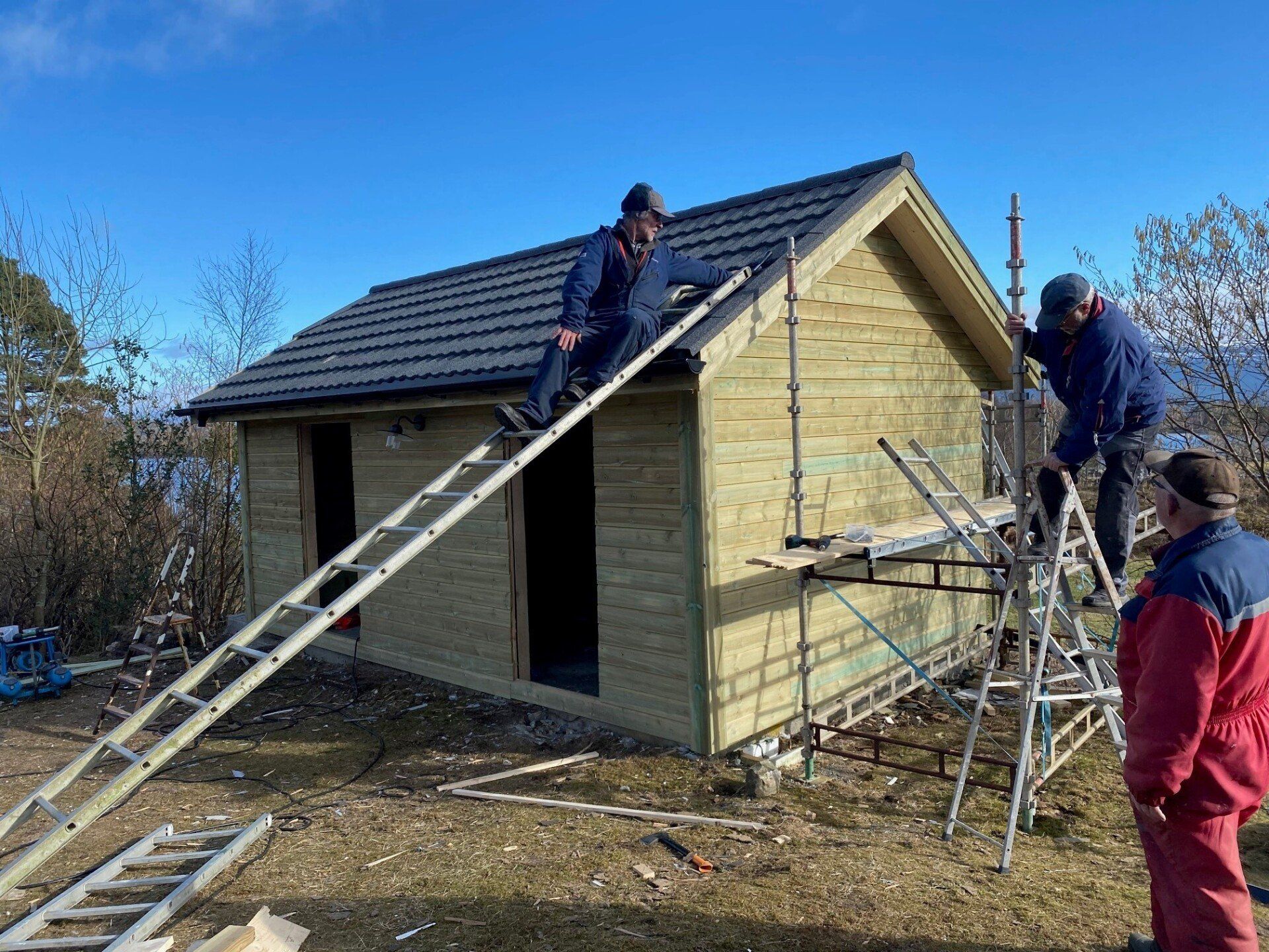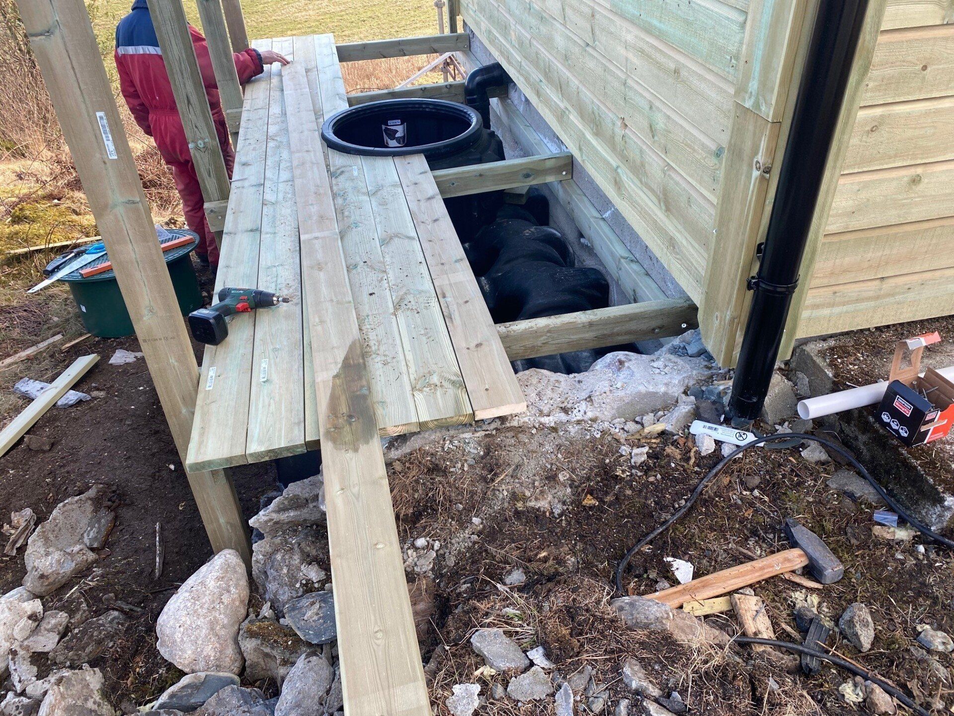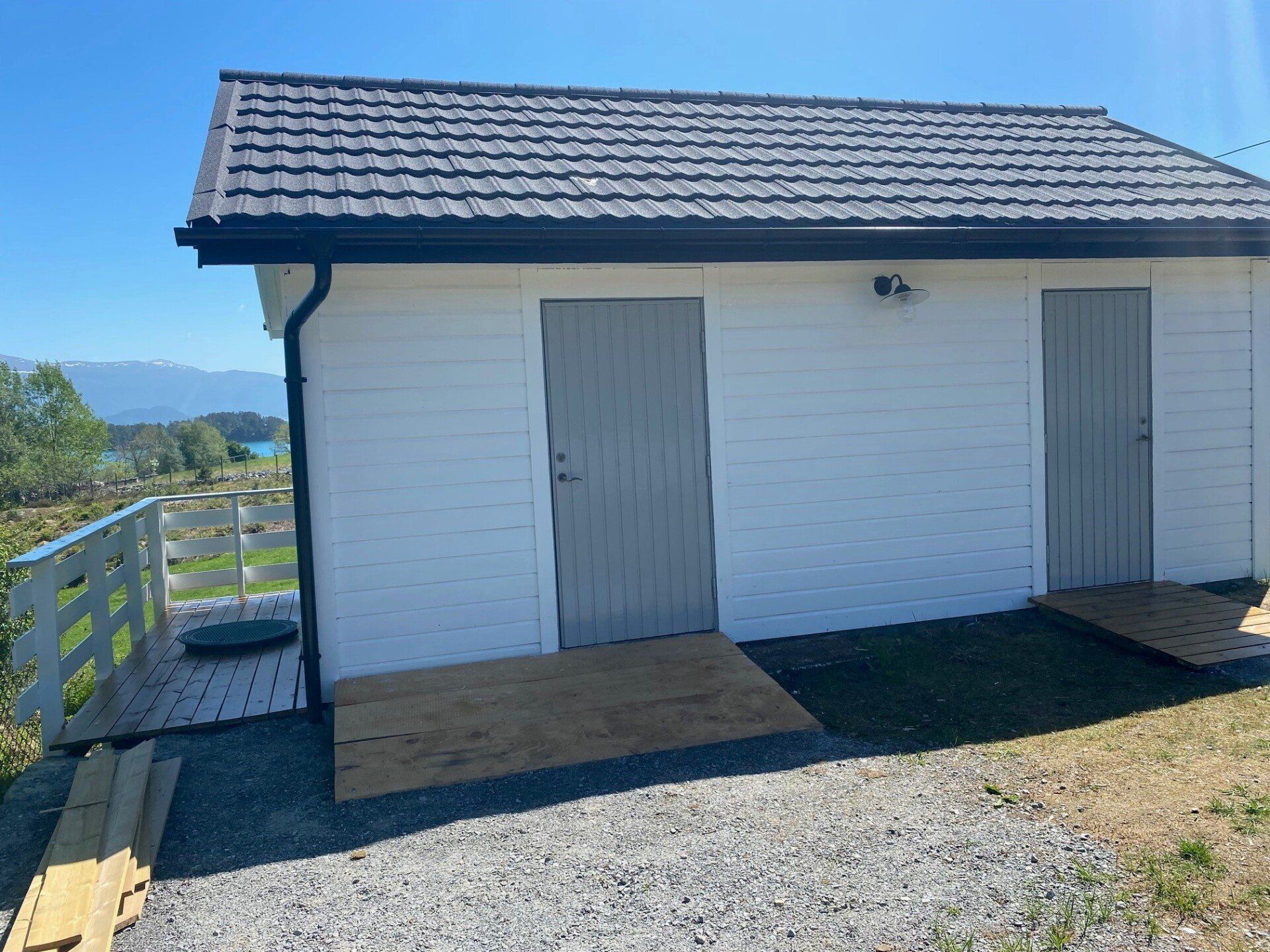 Det nye uthuset blei ferdigstilt sommeren 2021. Det blei bygd med to rom. Ett av rommet skal vi bruke som lagerrom og ett rom er innreda som handikaptoalett. Det er montert frostsikker vanntilførsel med tykkøkningspumpe. Det er montert vannklosett og vask med kaldt og varmt vann.